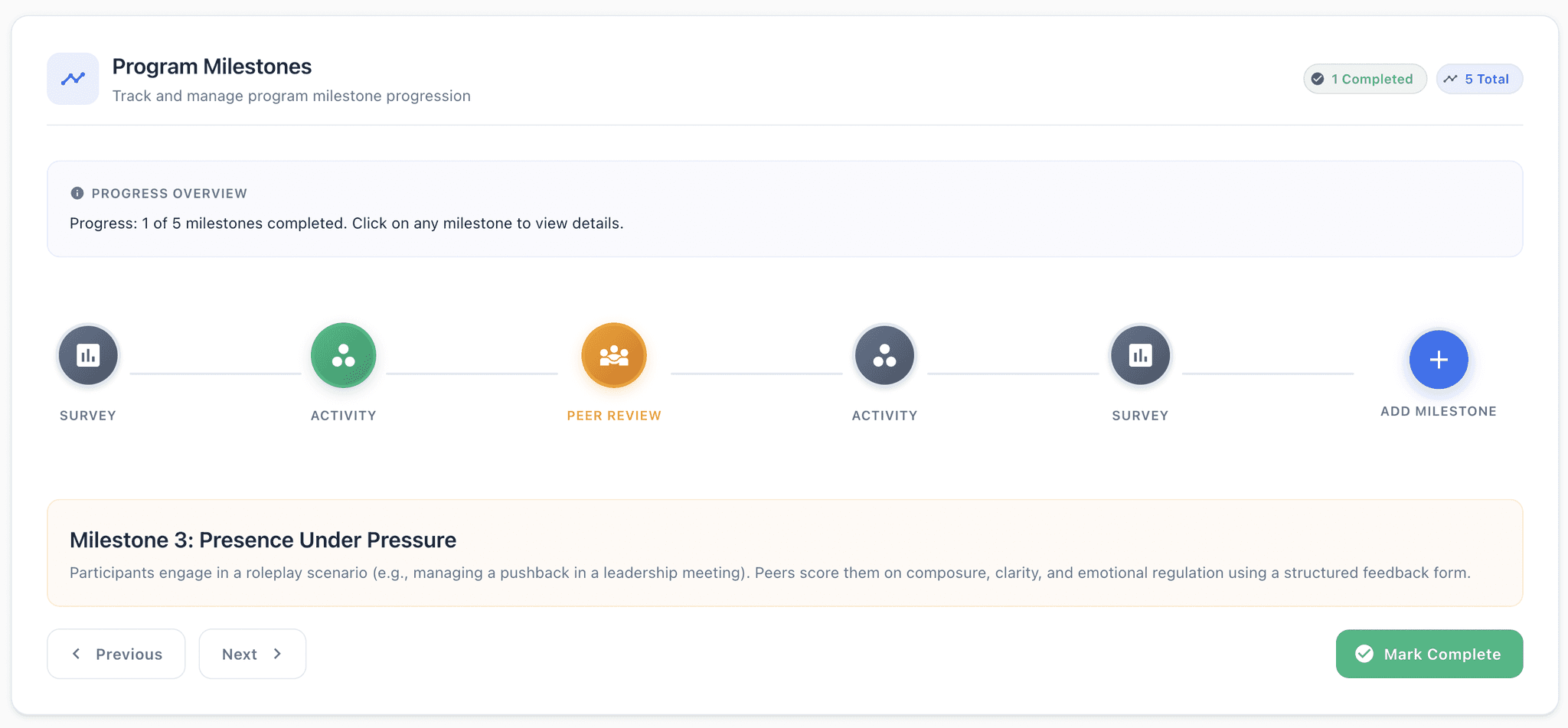 Capture honest reflections and tangible feedback. Whether it’s self-awareness or leadership presence, measure change where it counts most.